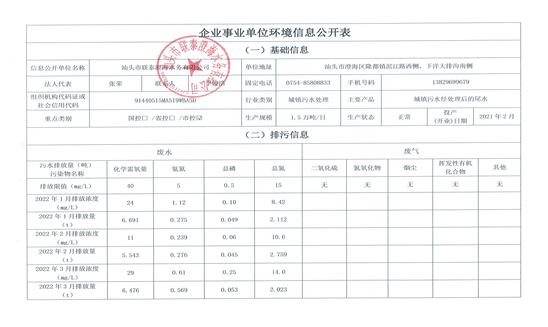 信息公開單位名稱: 汕頭市聯泰蘇南水務有限公司