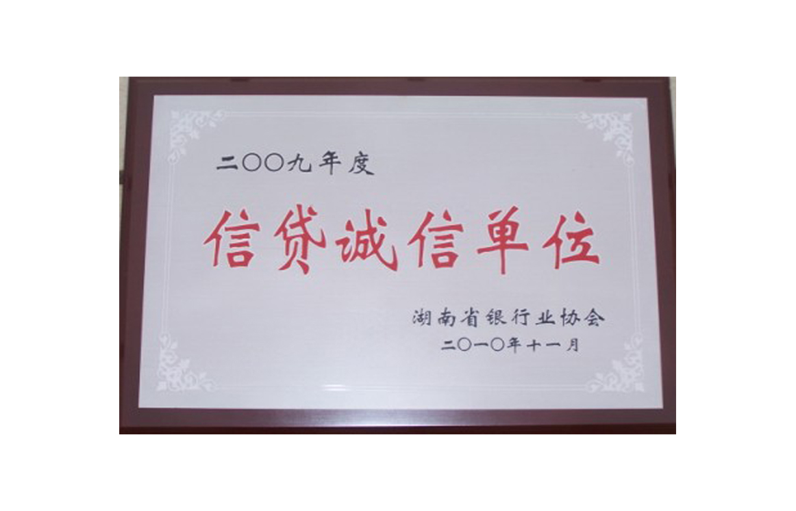 湖南省銀行業協會信貸2009年度誠信單位